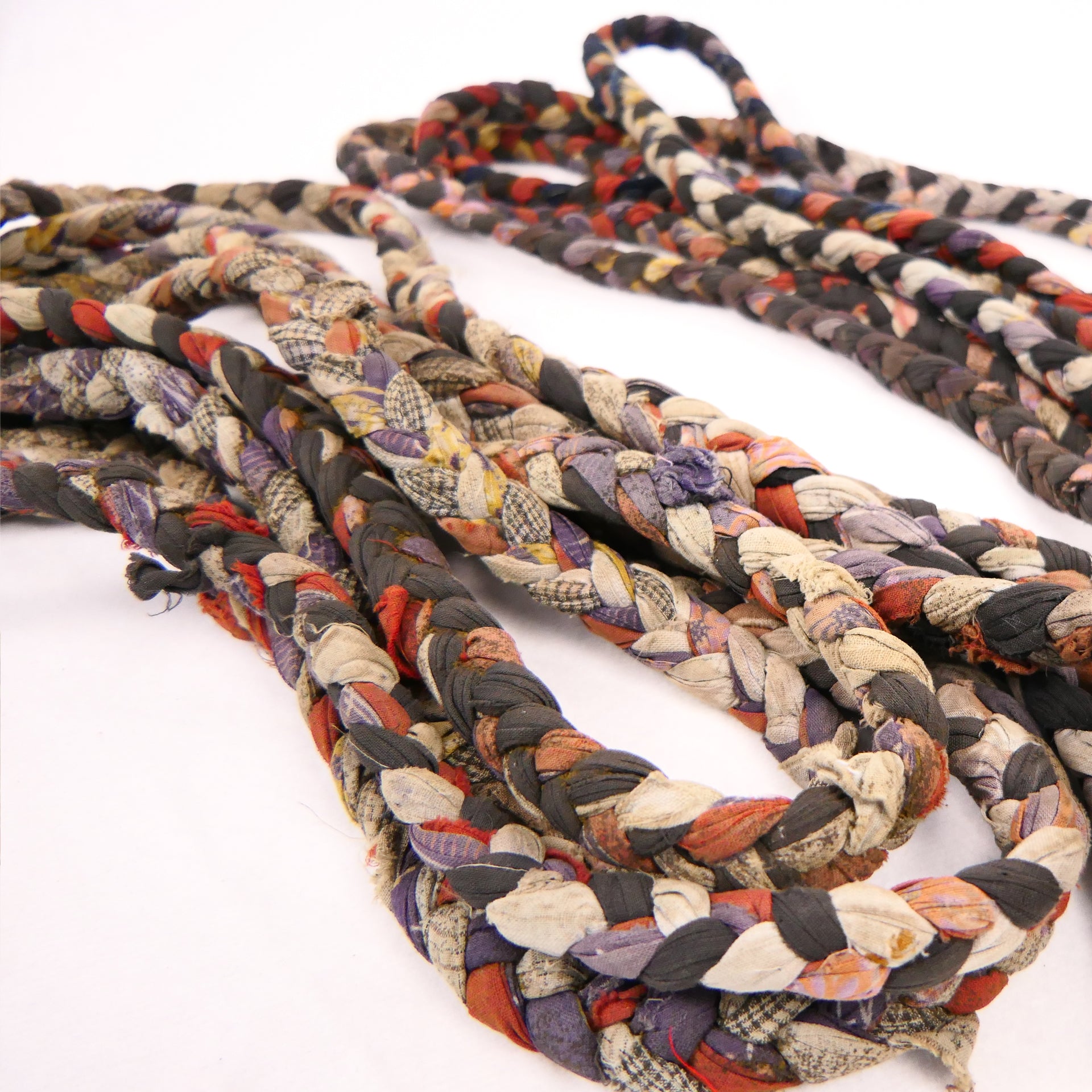 Early Meiji Japanese Folk Art Handmade Plaited Scrap Fabric Belts