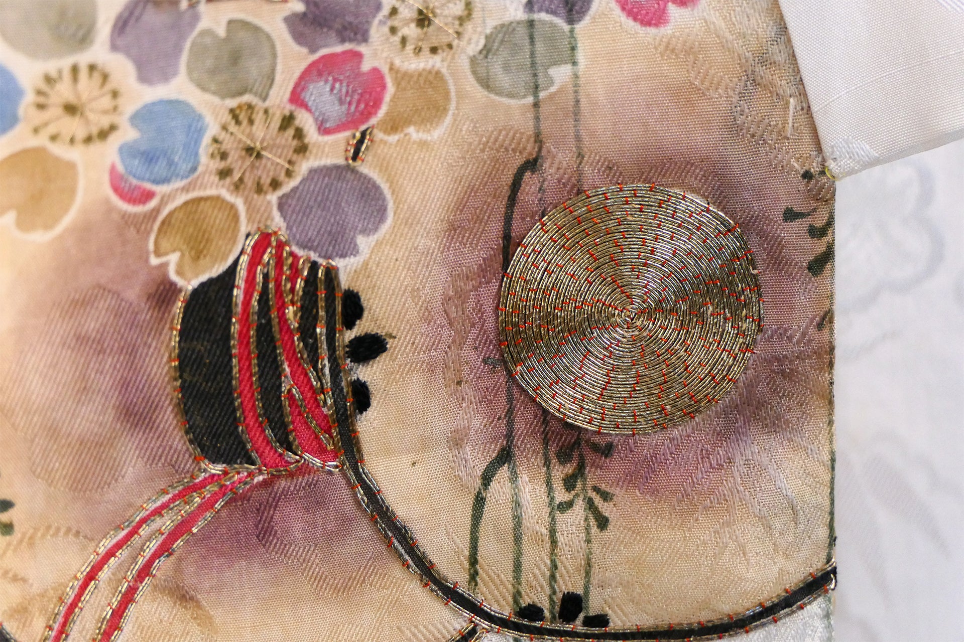 Meiji Weeping Wisteria Silk Kimono with Goldwork Knot Embroidery