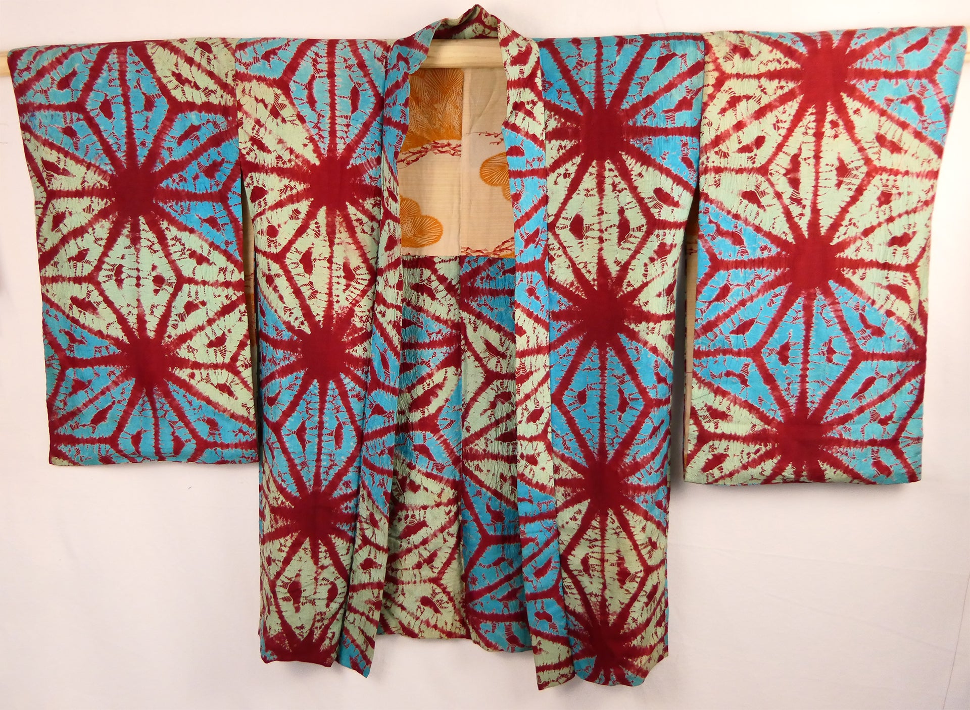 Japanese antique haori, Taisho period, shibori tie-dyed in an incredible bold star design. Pure silk and in wonderful condition, a very wearable and statement jacket.