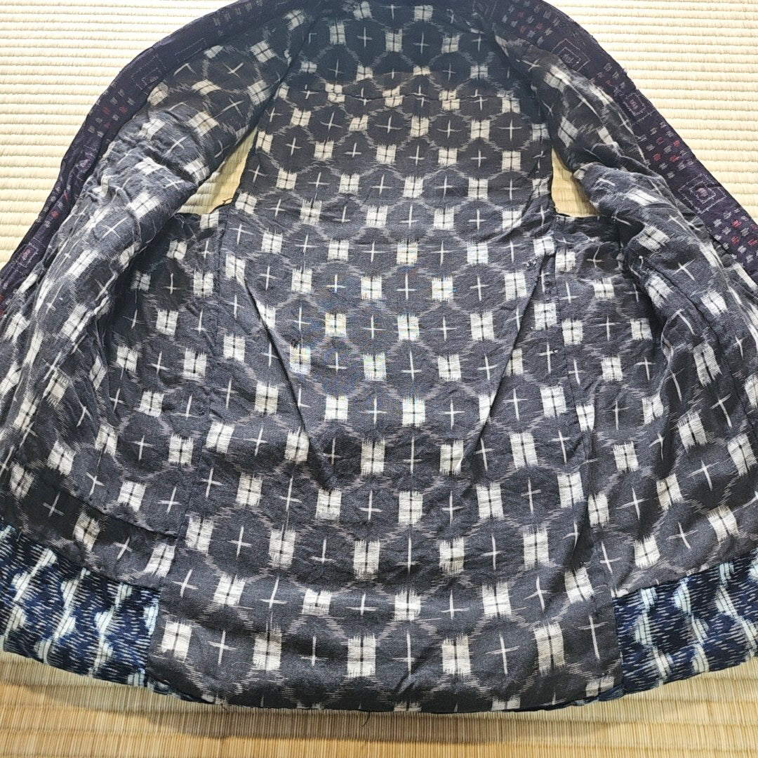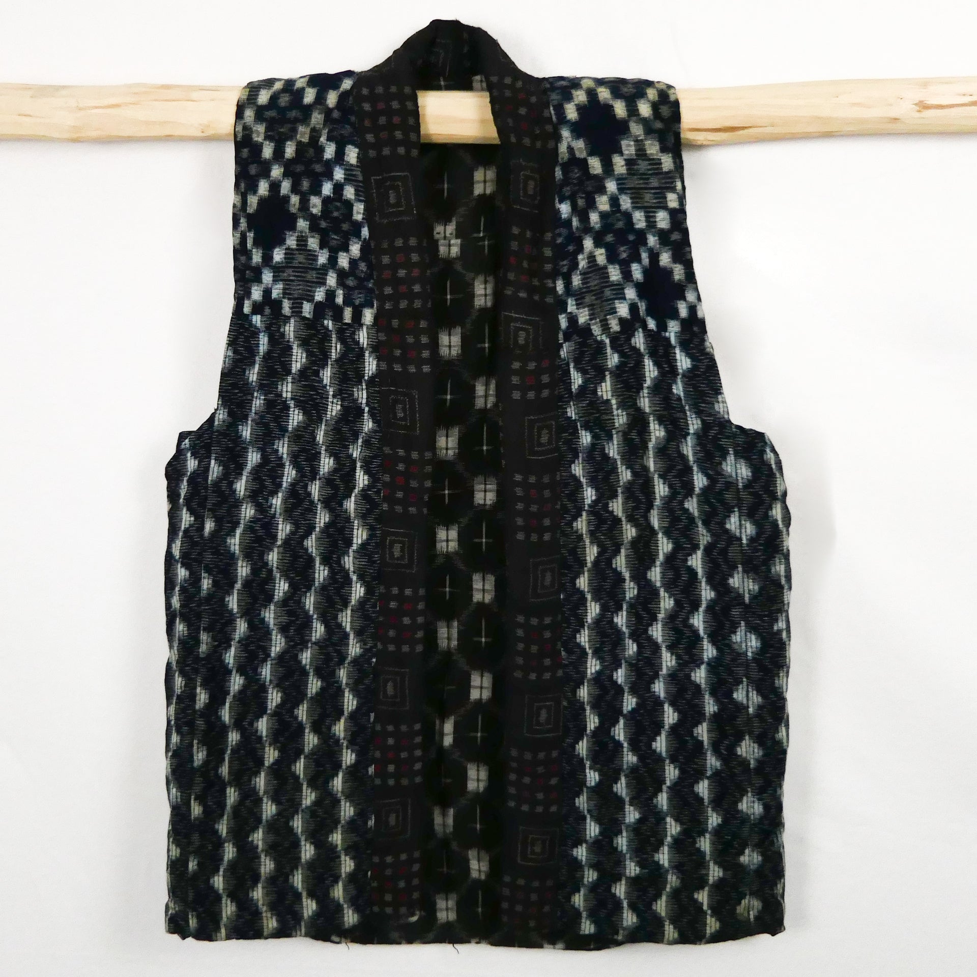 Vintage Showa Indigo Dyed Kasuri Boro Cotton Padded Waistcoat Vest